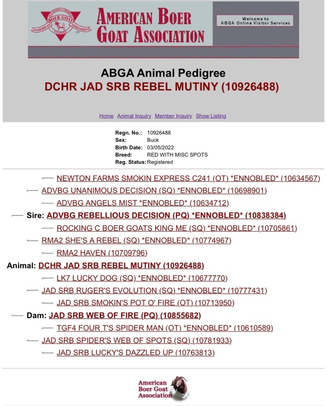 DCHR JAD SRB REBEL MUTINY son of ADVBG REBELLIOUS DECISION *ennobled* joining our farm family. Thank you Justin Dyjak for such an awesome buck.